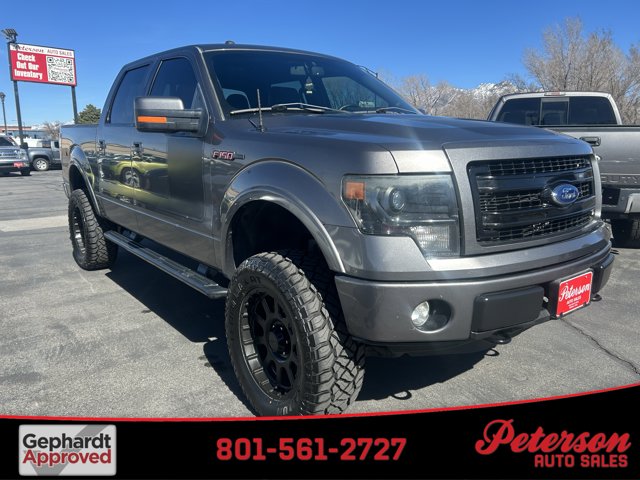This rugged 2013 Ford F-150 FX4 SuperCrew delivers the power and capability that has made the F-150 America's best-selling truck for decades.This truck has a lift, nice tires and wheels, dual power seats sunroof and more! With a potent 5.0L V8 engine producing 360 horsepower paired with 4-wheel drive, you'll have the muscle for heavy-duty towing thanks to the included tow hitch and hooks, plus the confidence to tackle any terrain. The crew cab configuration provides generous space for family and gear, while practical features like running boards, power mirrors, and Bluetooth connectivity make daily driving more convenient. This clean CARFAX truck comes ready to work or play with cruise control, keyless entry, and a pass-through rear seat for versatile cargo options.At Peterson Auto, we understand that finding a reliable work truck is an important decision. That's why we've maintained our reputation for honest, straightforward service since 1965. We are the 2023 Utah Quality Dealer of the Year Winner. We only charge a Dealer Doc Fee of $289 - no other fees. Our experienced team will help you secure financing through our network of over 40 lenders, regardless of your credit situation, and every vehicle includes a free CarFax report for your peace of mind.Visit us at Peterson Auto in Midvale to test drive this capable F-150 and experience why most of our customers become repeat buyers.